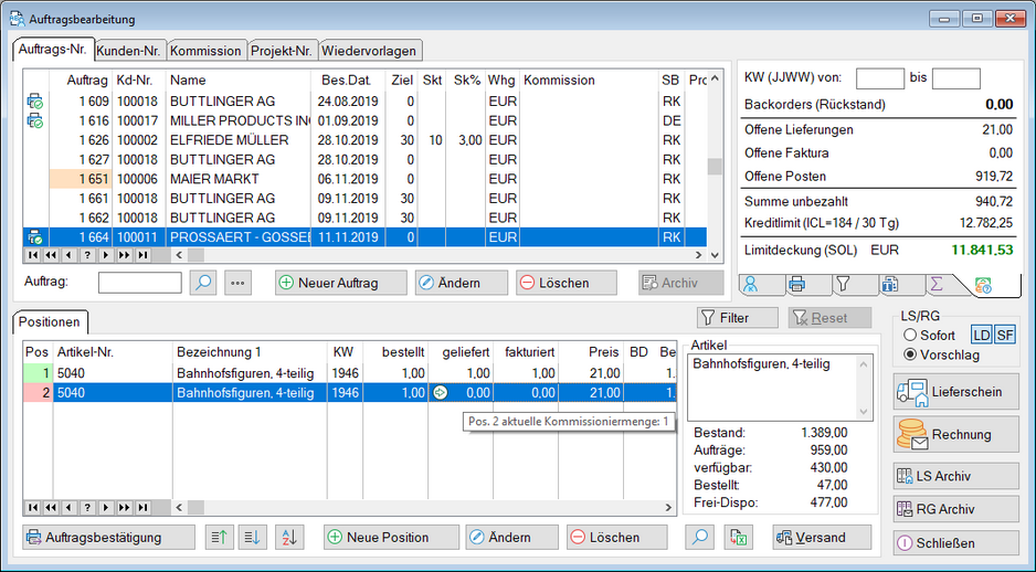 Um die Übersicht bei einer Vielzahl von offenen, komplett- bzw. teilgelieferten oder -fakturierten Aufträgen zu behalten, stehen zahlreiche aussagekräftige Auftragslisten- und Bildschirmabfragen zur Verfügung.